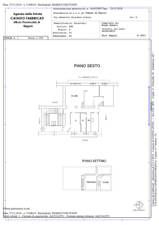 € 625.000Piena ed intera proprietà di appartamento sito in Napoli, avente accesso sia dalla Via Generale Orsini n. 5 e sia dalla Via Santa Lucia n. 143, posto al quinto piano oltre il piano ammezzato contraddistinto con il numero interno 19, composto di tre vani e accessori, con annesso locale sgabuzzino con accesso dalla sovrastante piccola terrazza - descrizione: ingresso corridoio, salone, camera, cameretta, disimpegno, cucina, due bagni, due balconi a livello e sovrastante piccolo vano con annesso terrazzo.